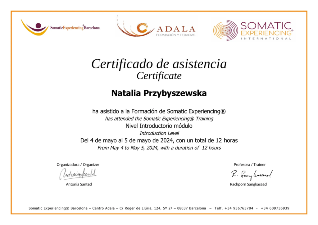 Nieustannie poszerzam swoje kompetencje w obszarze terapii trzeciofalowych oraz technik pracy z ciałem (jak Somatic Experiencing) i praktyk mindfulness. Jestem w trakcie procesu superwizyjnego w ramach całościowego szkolenia z Terapii Schematów, wierząc, że ciągły rozwój terapeuty jest niezbędny do skutecznej pomocy.